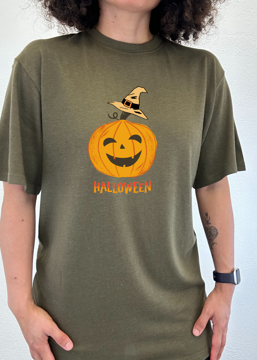 Halloween Pumpkin Unisex Graphic Bamboo T-Shirt green tea