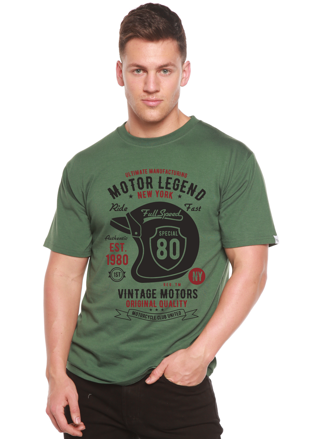 Motor Legend Helmet men's bamboo tshirt pine green