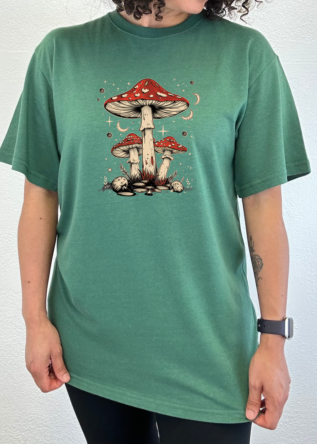 Boho Retro Hippie Mushrooms Natural Unisex Bamboo/Cotton Graphic T-Shirt