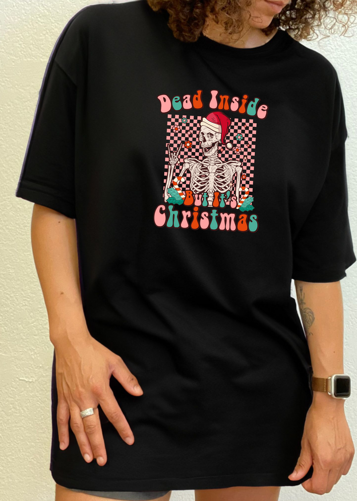 Dead Inside But It's Christmas Unisex Graphic Bamboo T-Shirt black
