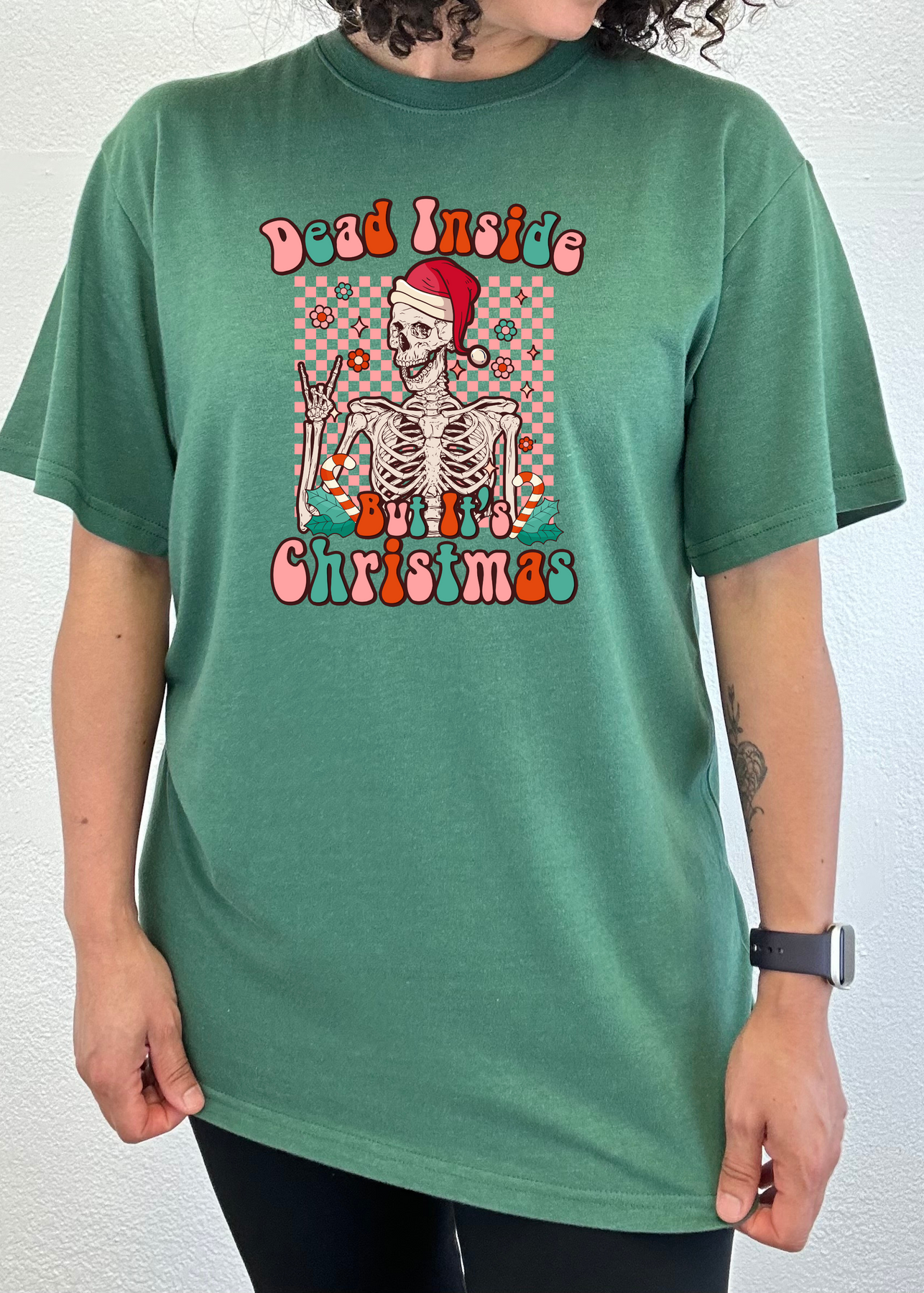 Dead Inside But It's Christmas Unisex Graphic Bamboo T-Shirt pine green