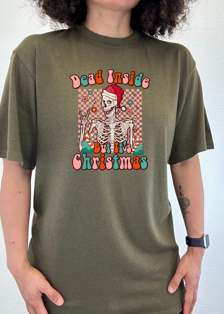 Dead Inside But It's Christmas Unisex Graphic Bamboo T-Shirt green tea