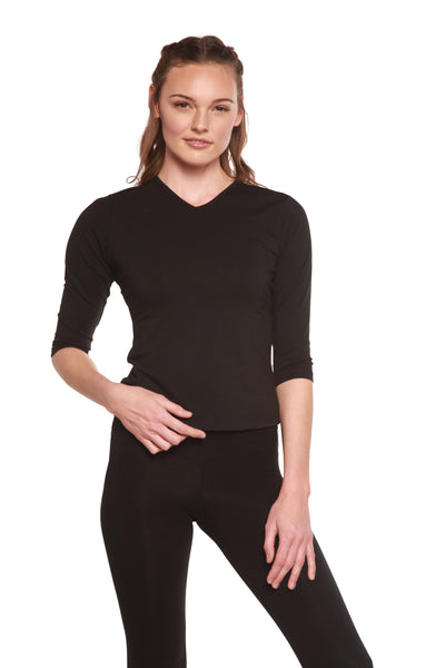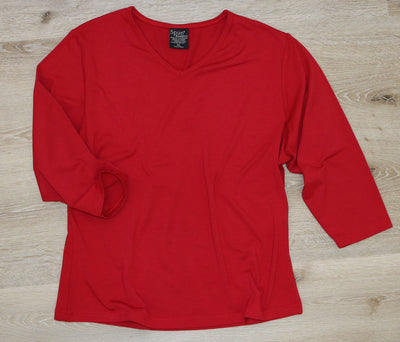 Our Women’s V-Neck Shirt 3/4 sleeve will instantly become one of your favorite wardrobe pieces. This fashionable blouse is made from a blend of 70% viscose from bamboo, 25% organic cotton, and 5% spandex giving it a medium-weight stretch jersey feel that is lightweight, comfortable, and breathable. With its classic style and v-neck design, this versatile blouse looks perfect for any occasion - whether you are headed to the office or out to dinner with friends. Available in two colors - Chili and Black - our Women’s V-Neck 3/4 sleeve is the perfect way to add a bit of style to your wardrobe.